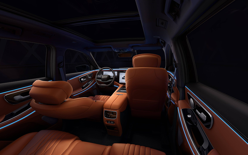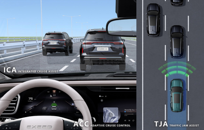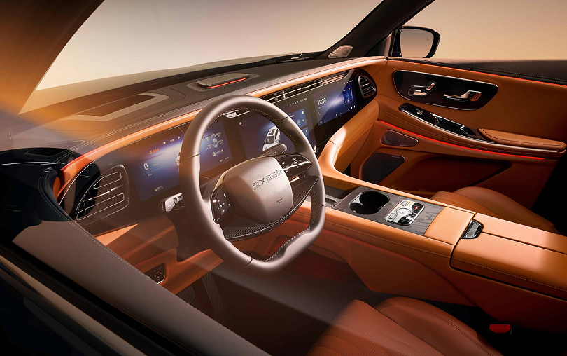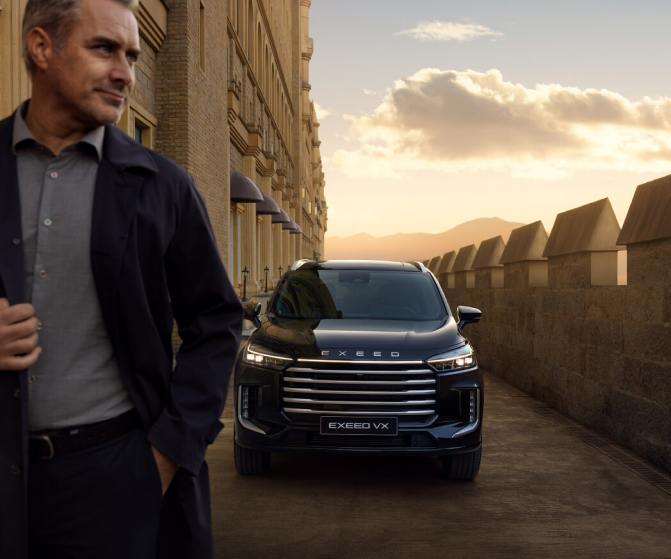 The EXEED VX makes a powerful statement with its luxurious design, featuring the striking Leonids front grille, chrome detailing, and fully LED head optics. The 20-inch two-toned alloy wheels paired with Continental tires enhance the vehicle’s dynamic presence, while the 1360 x 870 mm panoramic sunroof floods the cabin with light, creating a refined and elevated driving experience.